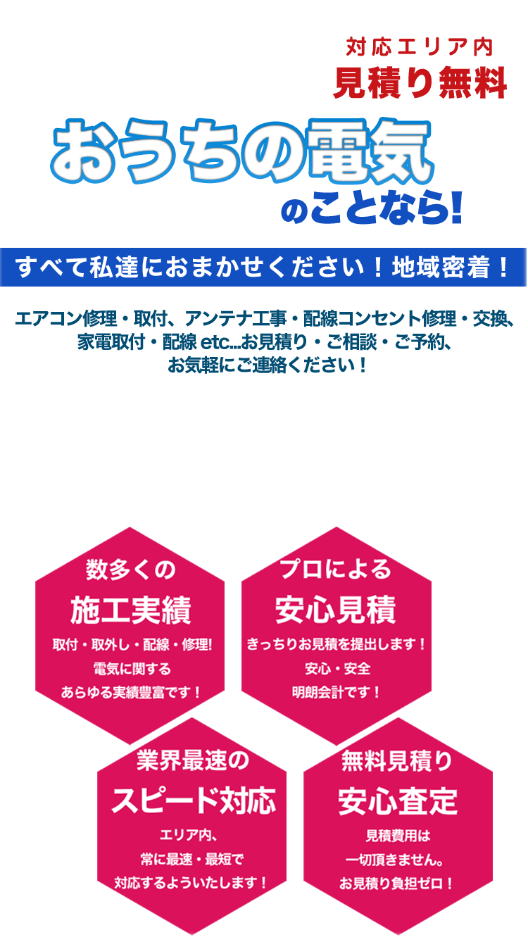 お家の電気、まるっとお任せ下さい!